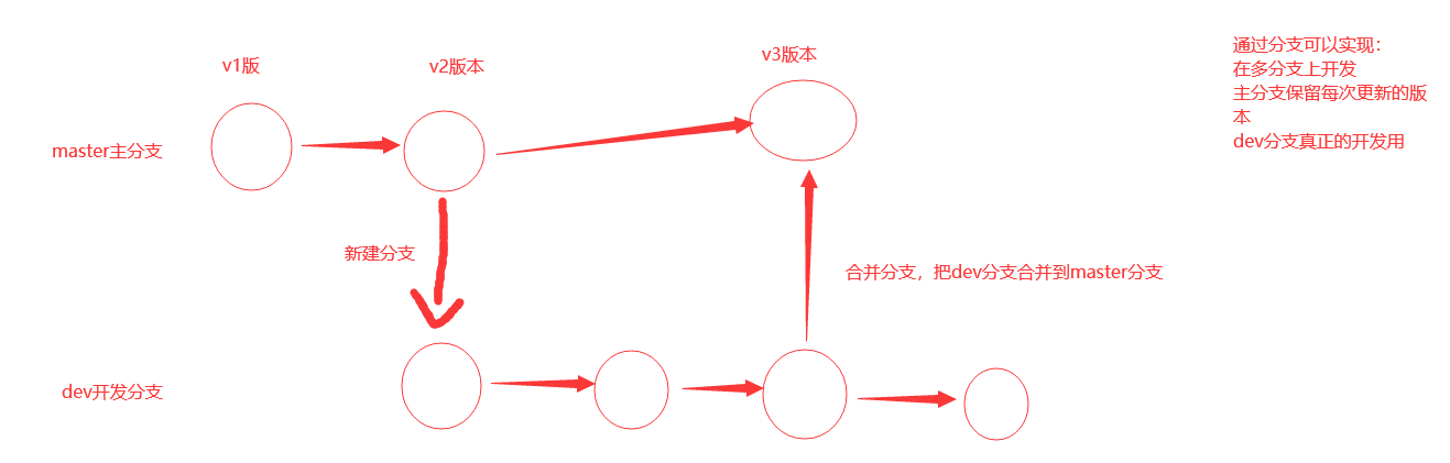 # 分支:通过分支,更方便协同开发,管理版本