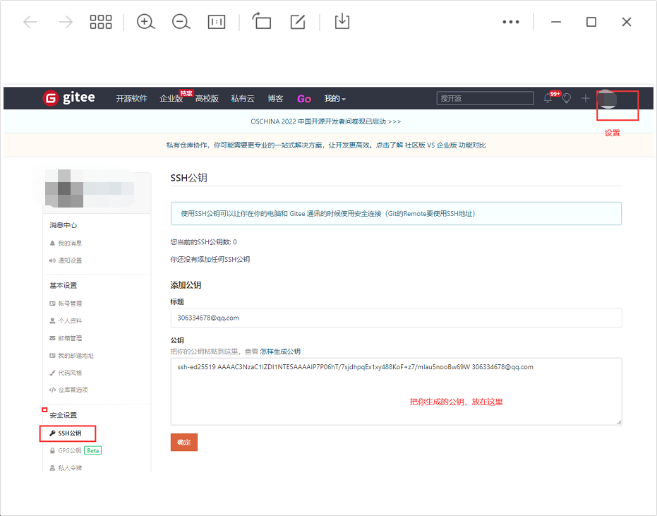-按照这个步骤操作:https://gitee.com/help/articles/4181