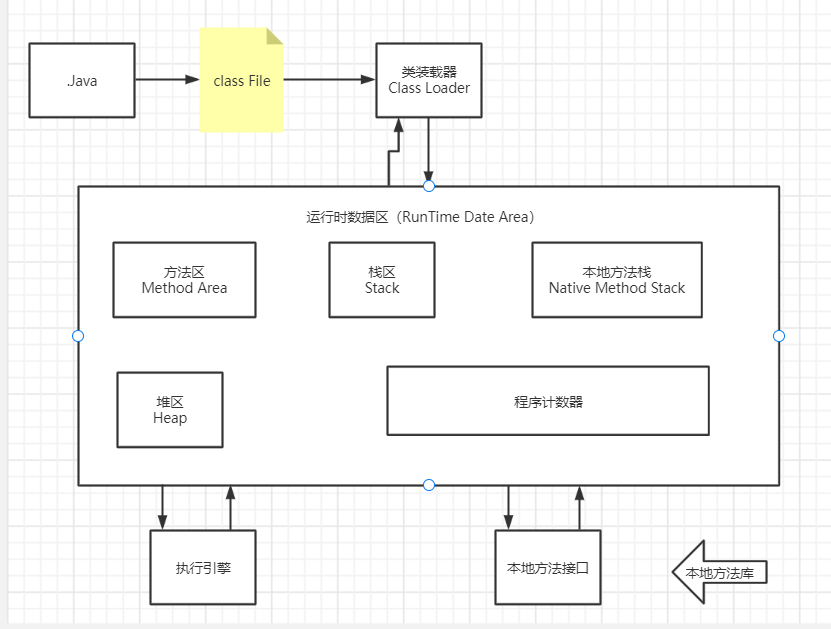 我们在IDE中编写的Java源代码被编译器编译成.class的字节码文件。然后由我们得ClassLoader负责将这些class文件给加载到JVM中去执行。