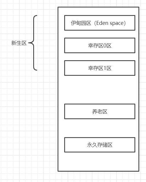 JVM在进行GC时,并不是三个区间统一进行,大部分时间都是在新生代进行