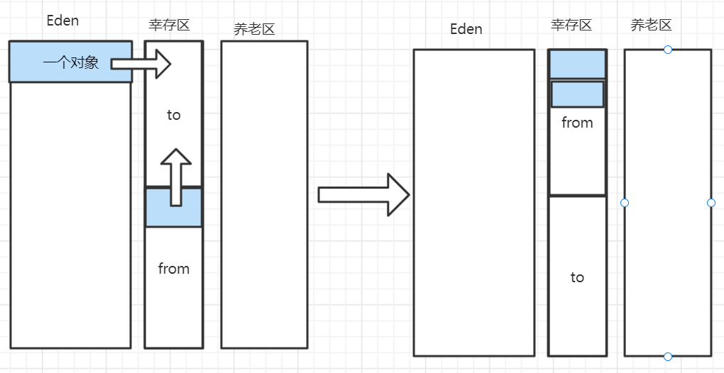每次GC都会将Eden中活的对象移到幸存区中,一旦Eden被GC后 就会是空的。(2)谁空谁是to(要保证有一个空间是空的)
