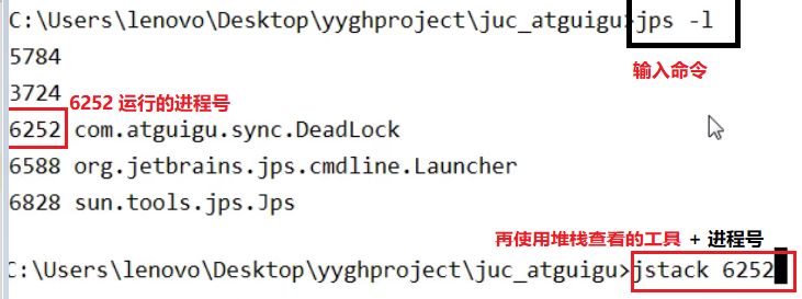 我们有时候不知道是否是死锁 。那么怎么来验证呢? (电脑配置的有环境变量,在命令窗口)