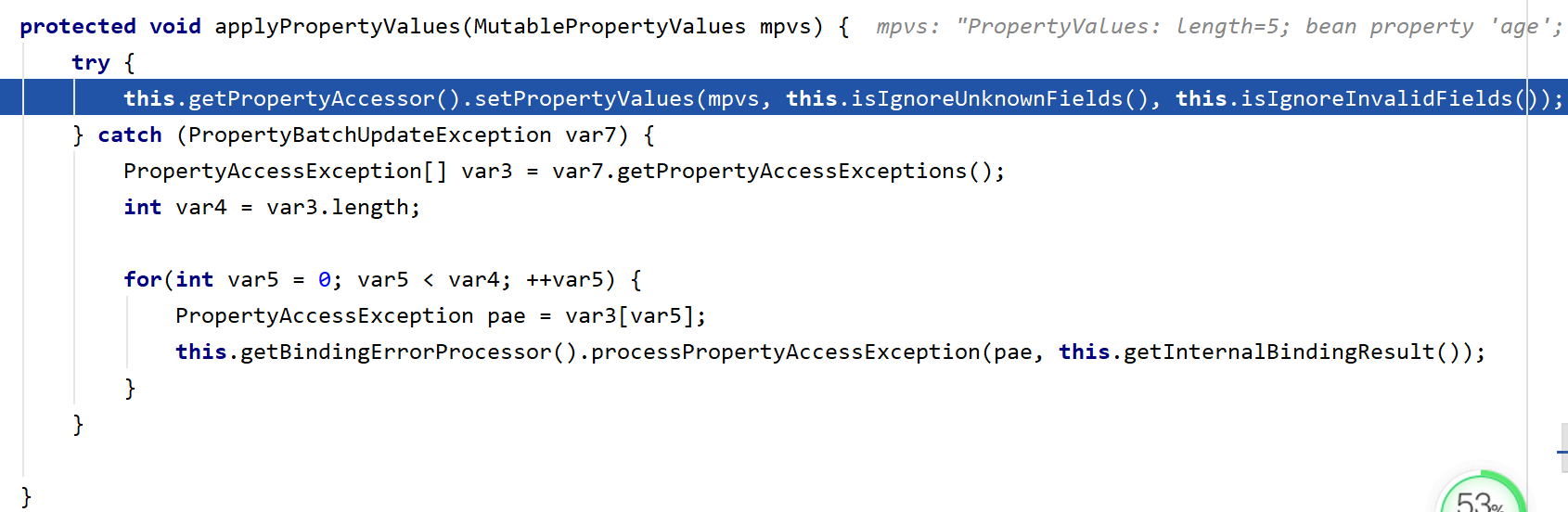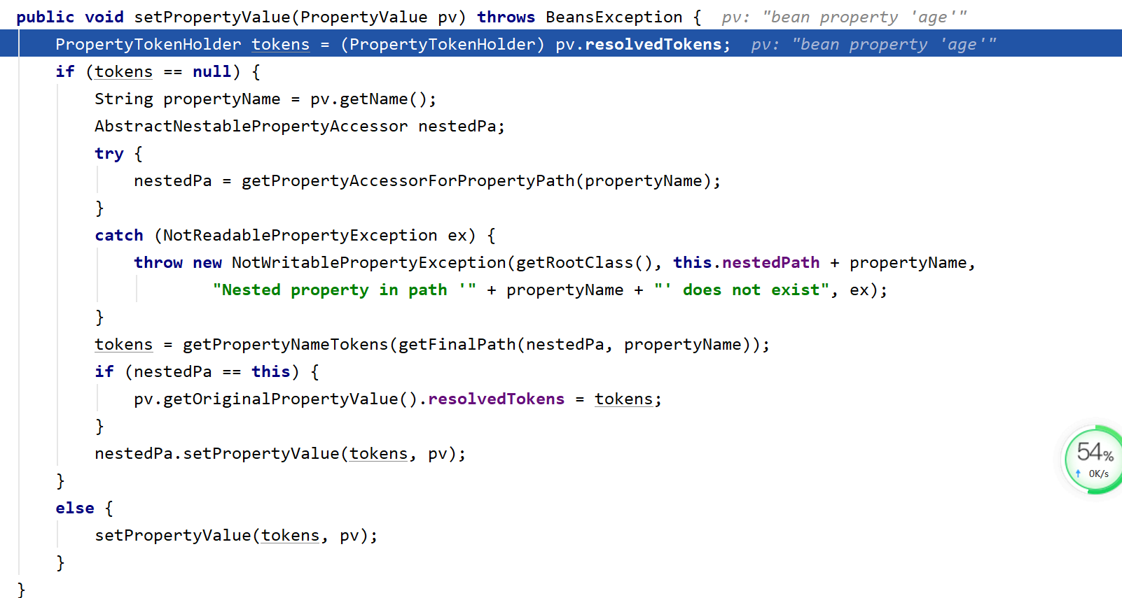 然后调用wrapper这个setPropertyValue赋值,利用反射