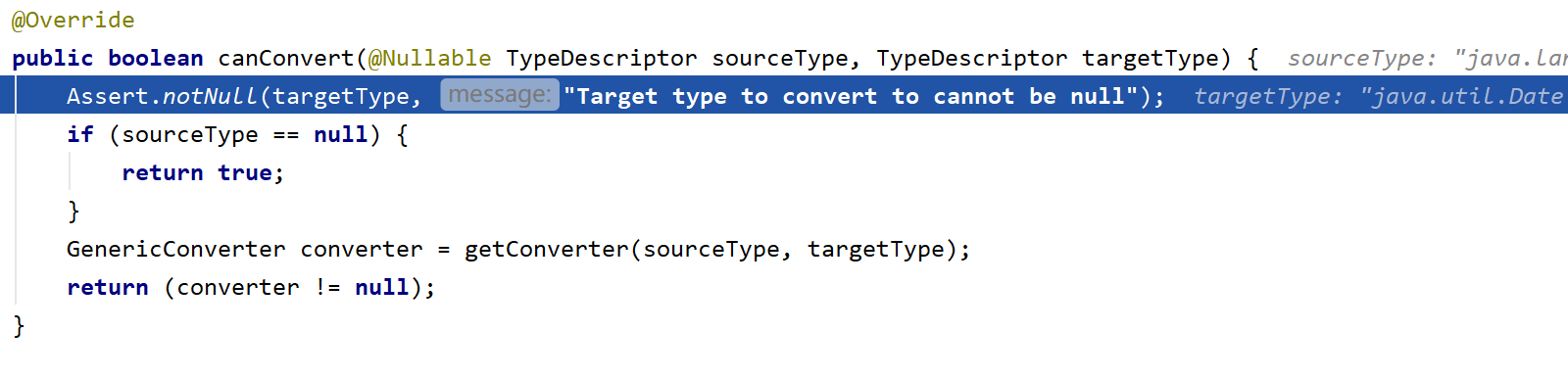 conversionService.canConvert(sourceTypeDesc, typeDescriptor):查看能不能转化