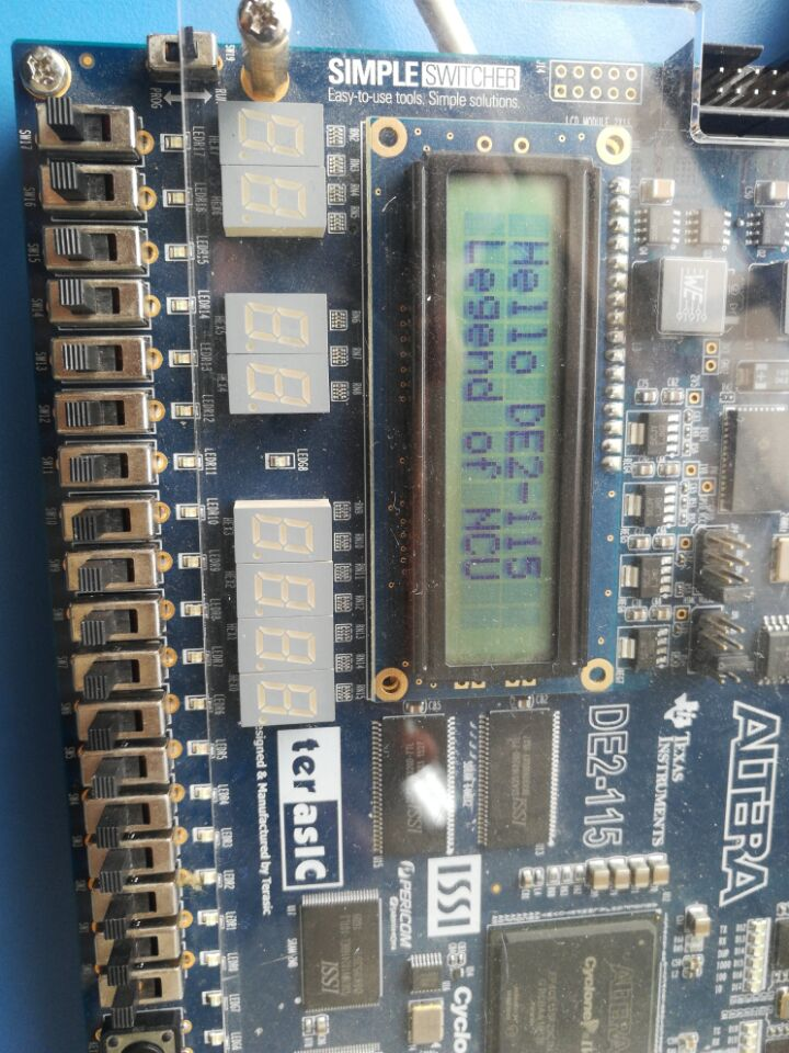 1 /* 2 * LCD1602.c 3 * 4 * Created on: 2019年8月25日 5 * Author: Legend 6 */ 7 8 #include <stdio.h> 9 #include <altera_avalon_pio_regs.h> 10 #include <alt_types.h> 11 #include <unistd.h> 12 #include <system.h> 13 #include <string.h> 14 #include <io.h> 15 #include <sys/alt_irq.h> 16 #include "../inc/lcd1602.h" 17 18 19 void LCD_Init() 20 { 21 lcd_write_cmd(LCD1602_BASE,0x38); //初始化LCD 22 usleep(2000); 23 24 lcd_write_cmd(LCD1602_BASE,0x0c); //关显示,光标闪烁方式 25 usleep(2000); 26 27 lcd_write_cmd(LCD1602_BASE,0x01); //清显示 28 usleep(2000); 29 30 lcd_write_cmd(LCD1602_BASE,0x06); //光标迁移方式,不允许整屏移动 31 usleep(2000); 32 33 lcd_write_cmd(LCD1602_BASE,0x80); //显示光标指示的位置 34 usleep(2000); 35 } 36 37 void LCD_Show_Text(char*Text) 38 { 39 int i; 40 for(i=0;i<strlen(Text);i++) 41 { 42 lcd_write_data(LCD1602_BASE,Text[i]); 43 usleep(2000); 44 45 } 46 } 47 48 void LCD_Line2() //换行 49 { 50 lcd_write_cmd(LCD1602_BASE,0xc0); 51 usleep(2000); 52 } 53 54 55 int main() 56 { 57 char Text1[16]=" Hello DE2-115 "; 58 char Text2[16]=" Legend of NCU "; 59 LCD_Init(); 60 LCD_Show_Text(Text1); 61 LCD_Line2(); 62 LCD_Show_Text(Text2); 63 64 return 0; 65 } 66 67 68 69 //http://blog.sina.com.cn/s/blog_457bf05a0100k8vy.html