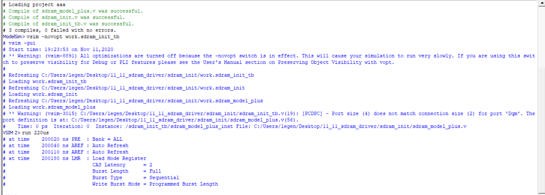 1 `timescale 1ns/1ns 2 module sdram_init_tb; 3 reg sclk ; 4 reg s_rst_n ; 5 wire [3:0] init_cmd ; // 初始化命令 6 wire [1:0] init_bank ; // 初始化Bank地址 7 wire [12:0] init_addr ; // 8 wire init_end ; // 初始化结束信号 9 10 sdram_init sdram_init_inst( 11 .sclk ( sclk ), 12 .s_rst_n ( s_rst_n ), 13 .init_cmd ( init_cmd ), 14 .init_bank ( init_bank ), 15 .init_addr ( init_addr ), 16 .init_end ( init_end ) 17 ); 18 19 sdram_model_plus sdram_model_plus_inst( 20 .Dq ( ), 21 .Addr (init_addr ), 22 .Ba (init_bank ), 23 .Clk (~sclk ), // 24 .Cke (1'b1 ), 25 .Cs_n (init_cmd[3] ), 26 .Ras_n (init_cmd[2] ), 27 .Cas_n (init_cmd[1] ), 28 .We_n (init_cmd[0] ), 29 .Dqm (2'b0 ), 30 .Debug (1'b1 ) 31 ); 32 33 defparam sdram_model_plus_inst.addr_bits = 13; 34 defparam sdram_model_plus_inst.data_bits = 16; 35 defparam sdram_model_plus_inst.col_bits = 9; 36 defparam sdram_model_plus_inst.mem_sizes = 2*1024*1024; 37 38 initial 39 sclk = 1'b0; 40 always #5 sclk = ~sclk; 41 42 initial 43 begin 44 s_rst_n = 1'b0; 45 #21; 46 s_rst_n = 1'b1; 47 end 48 49 endmodule