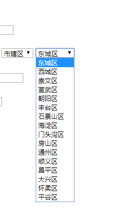 也就是点击市辖区这个下拉框里面值,下个下拉框出现对应的值