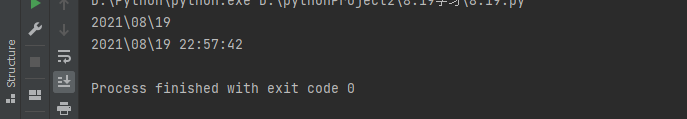 import time print(time.strftime('%Y\%m\%d')) print(time.strftime('%Y\%m\%d %H:%M:%S')) # 只有月和日小写否则输出结果会不对