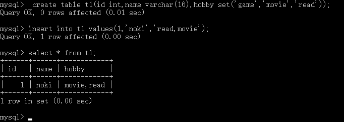 create table student( id int, name char(16), born_year year, birth date, study_time time, reg_time datetime );