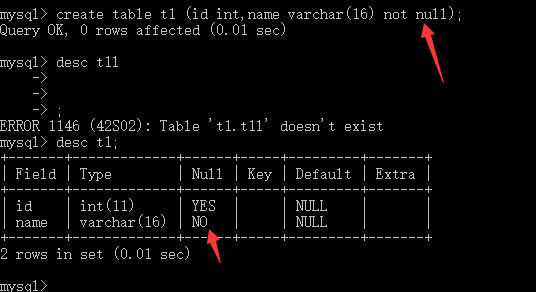 create table 表名(字段名 字段类型(宽度) 约束条件,