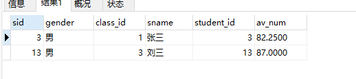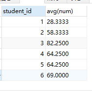 第四步 做连表操作 与学生表进行相连 需要给这个avg(num)重命名一个名字,不然在取值时 因为是个函数 而不是一个名字 会报错