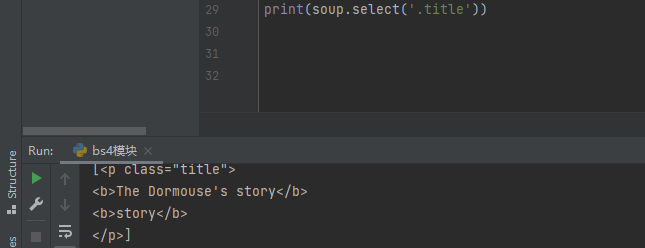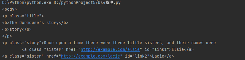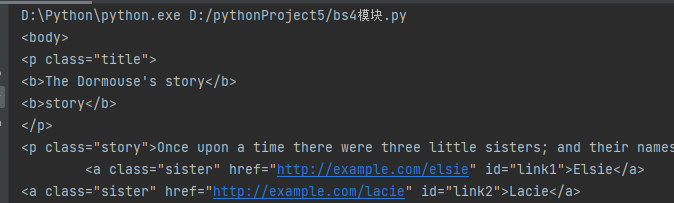# 构造一个网页数据 html_doc = """ <html> <head> <title>The Dormouse's story</title> </head> <body> <p class="title"> <b>The Dormouse's story</b>