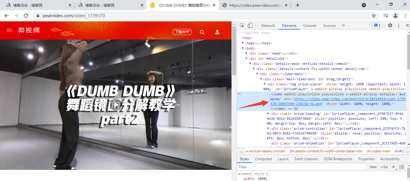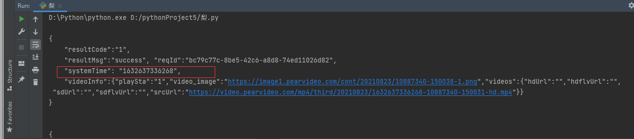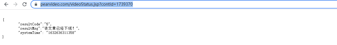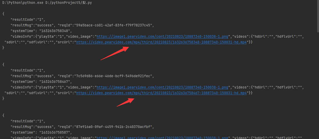 获得的视频链接:https://video.pearvideo.com/mp4/third/20210823/1632637070451-10887340-150031-hd.mp4