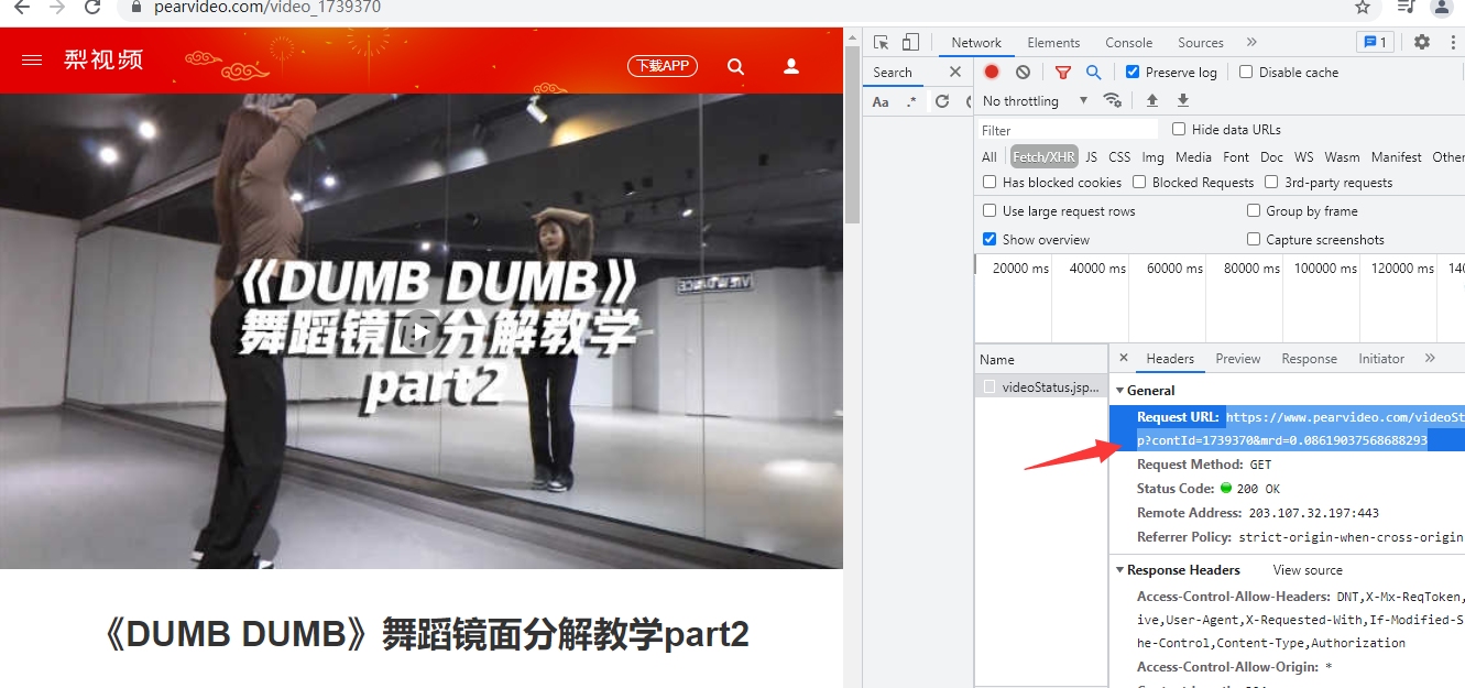 检查视频详情页后台发送的网址