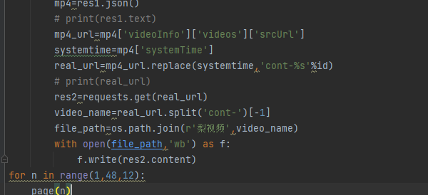res1=requests.get('https://www.pearvideo.com/videoStatus.jsp' #向视频页后台发送数据的网址发送请求