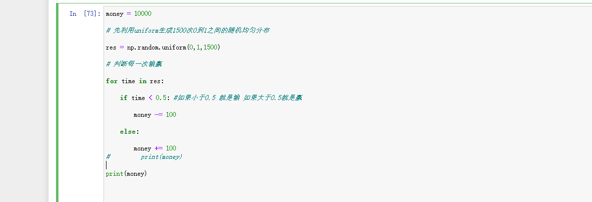 jason总共玩了1500场,写程序计算1500场之后jason还剩多少钱