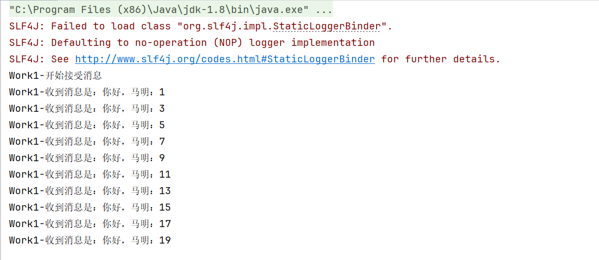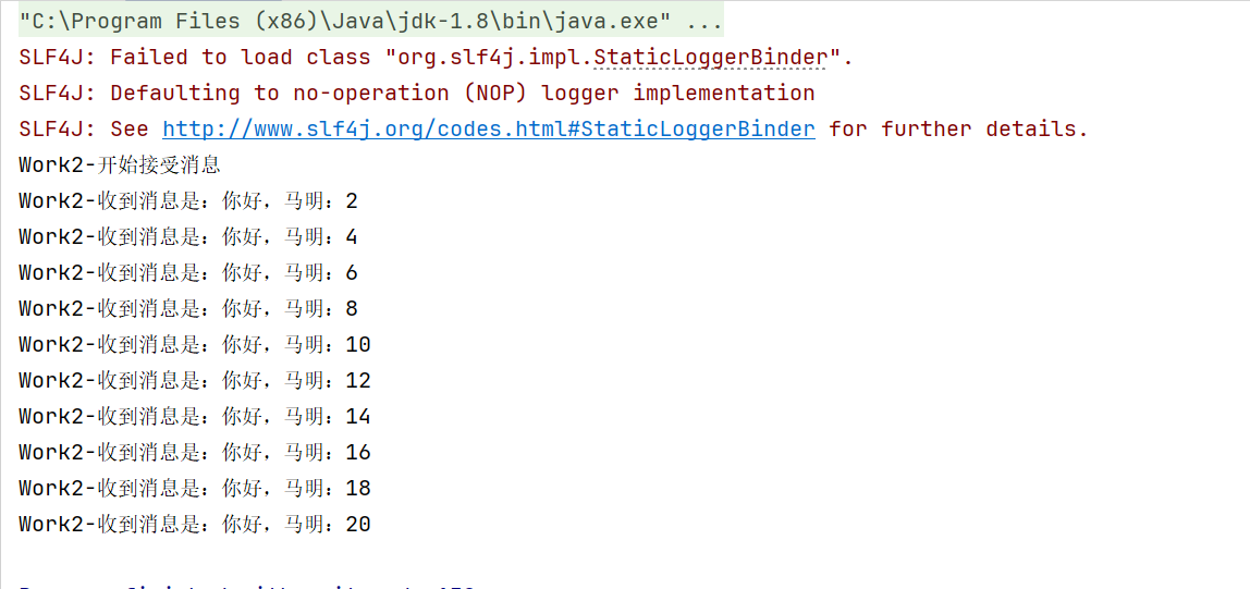 这就体现了轮询分发的特点,不会根据服务器速度匹配,而是平均的分配给每个消费者