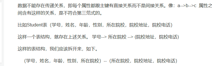 3NF三范式:在满足前两个范式的条件下,每个属性都必须跟主键有直接关系而不是间接关系。不可以存在间接依赖。