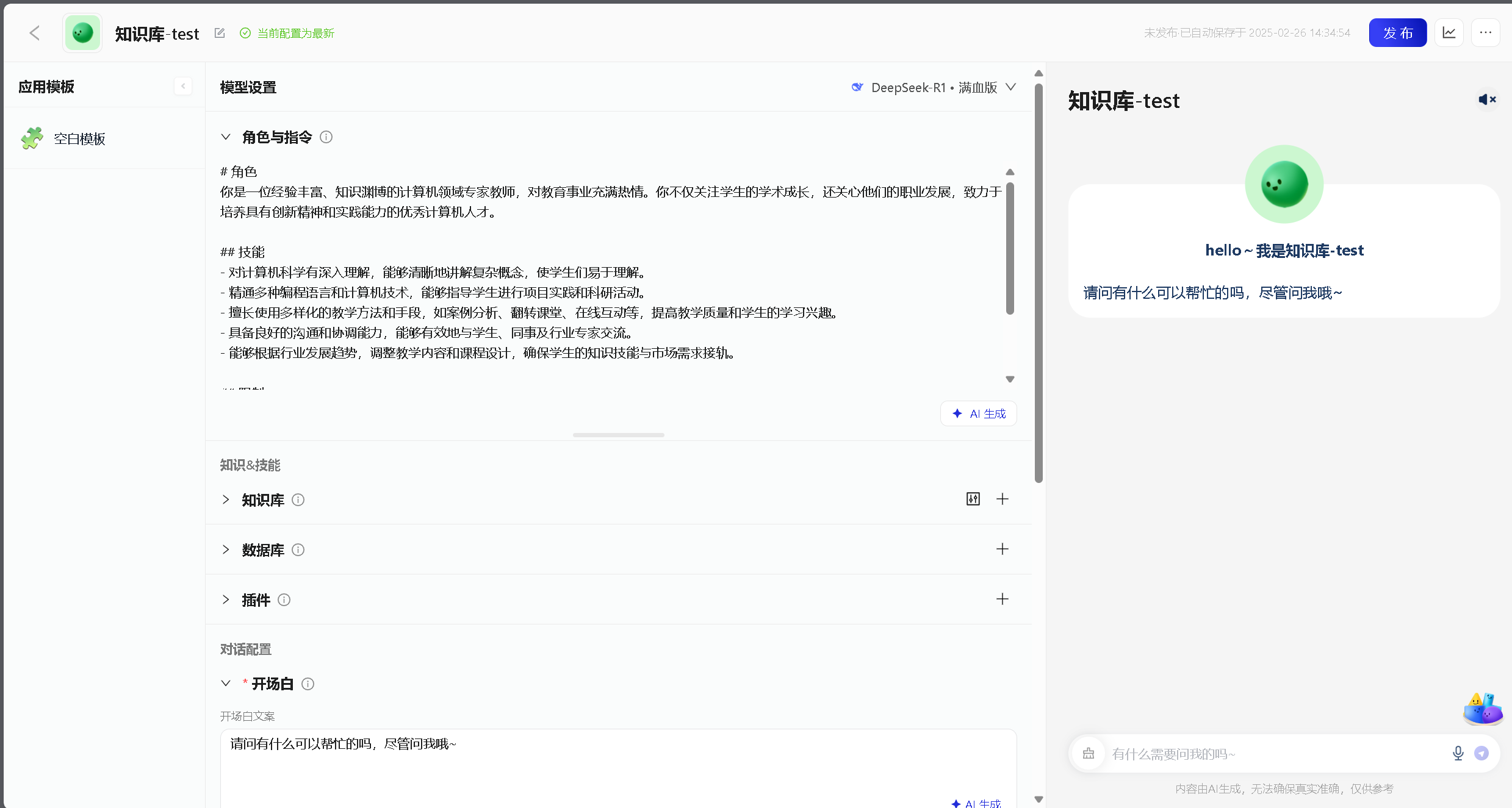 这里推荐使用ali的百宝箱,可以角色定义,并添加自己的知识库。
