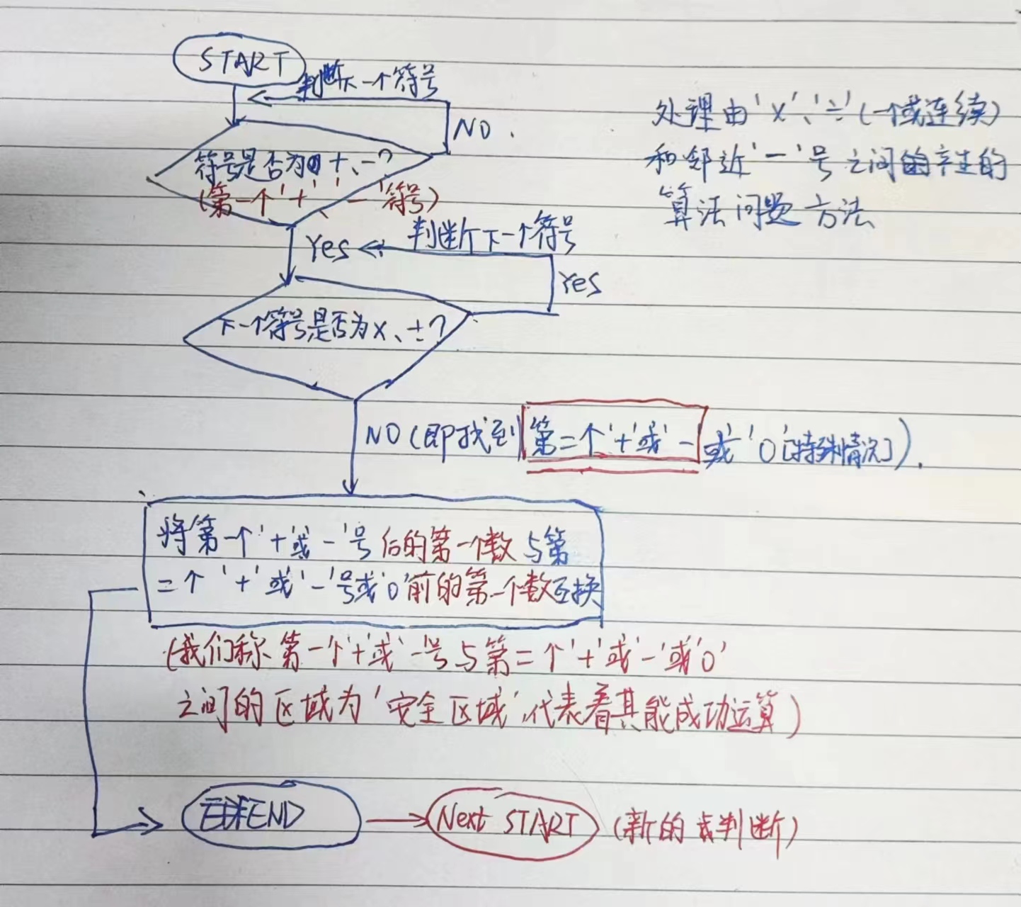 5.第二步解决特殊情况:如果在进行一次连续的*或/前的符号是减号,我们就应该交换,那交换那个,如何判断,请看图