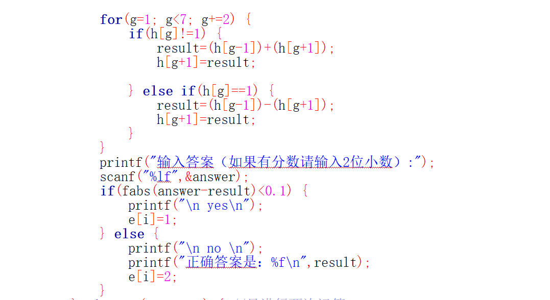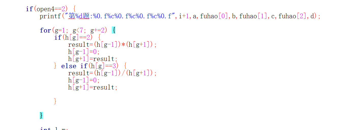 printf("第%d题:%0.f%c%0.f%c%0.f%c%0.f",i+1,a,fuhao[0],b,fuhao[1],c,fuhao[2],d);
