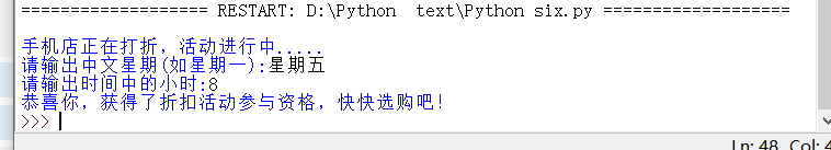 print("恭喜你,获得了折扣活动参与资格,快快选购吧!")