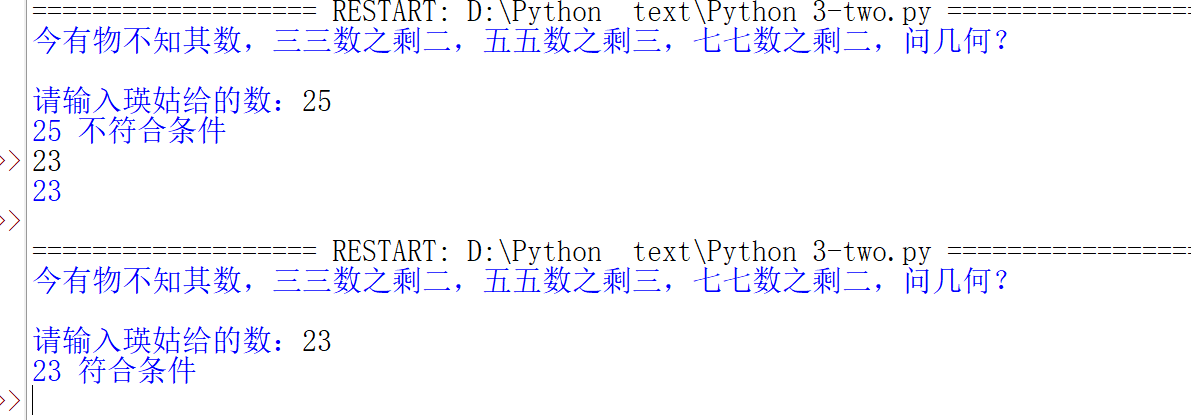 print(number,"符合条件:三三之数剩二,五五之数剩三,七七之数剩二")
