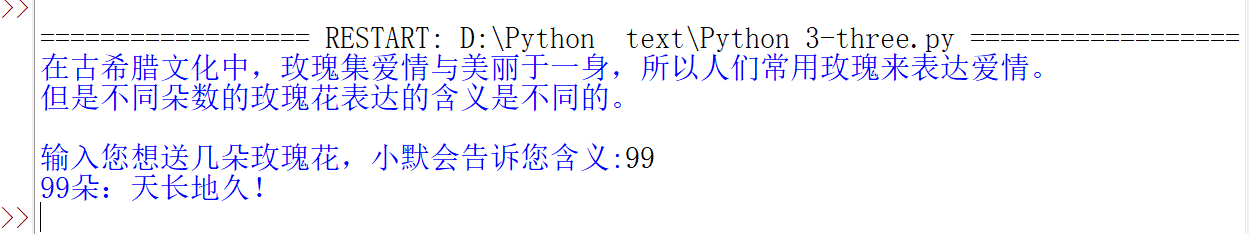 print("但是不同朵数的玫瑰花表达的含义是不同的。\n")