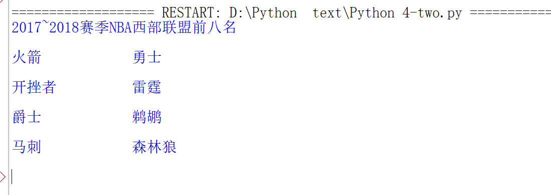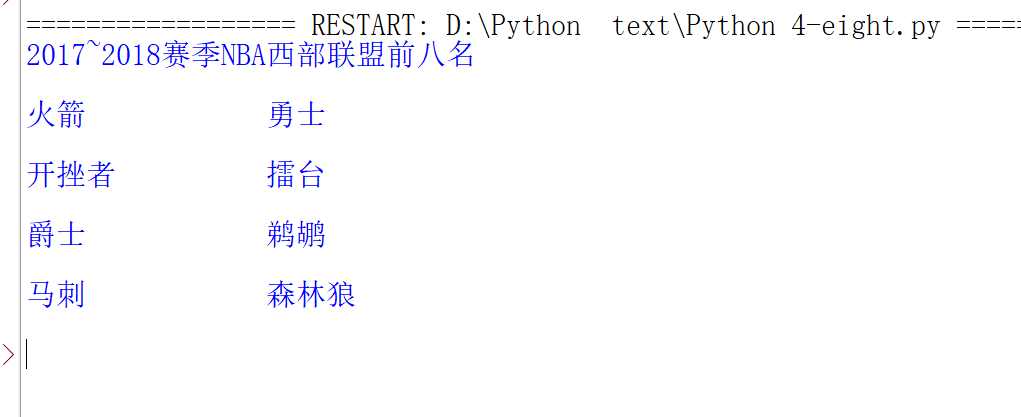 print("2017~2018赛季NBA西部联盟前八名\n")