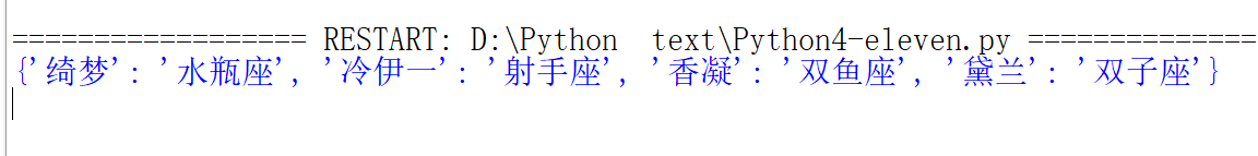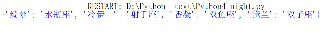 print("【香凝】的星座是",person_dict.get("香凝"))