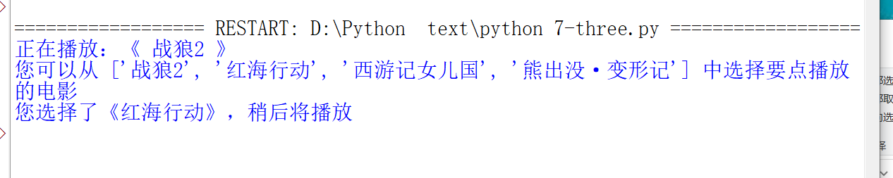 print("已选电影:"+film1)