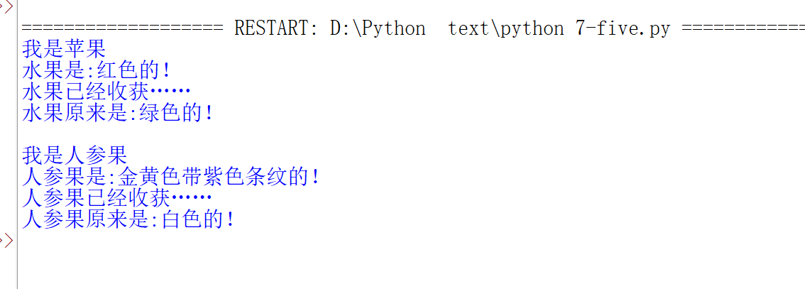 print("水果原来是:" + Fruit.color + "的!")