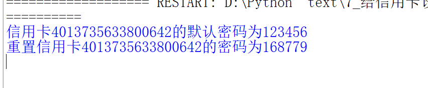 print("信用卡" + kh +"的默认密码为123456")