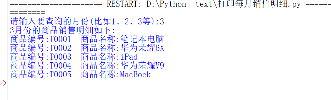 print(str(month) + "月份的商品销售明细如下:")