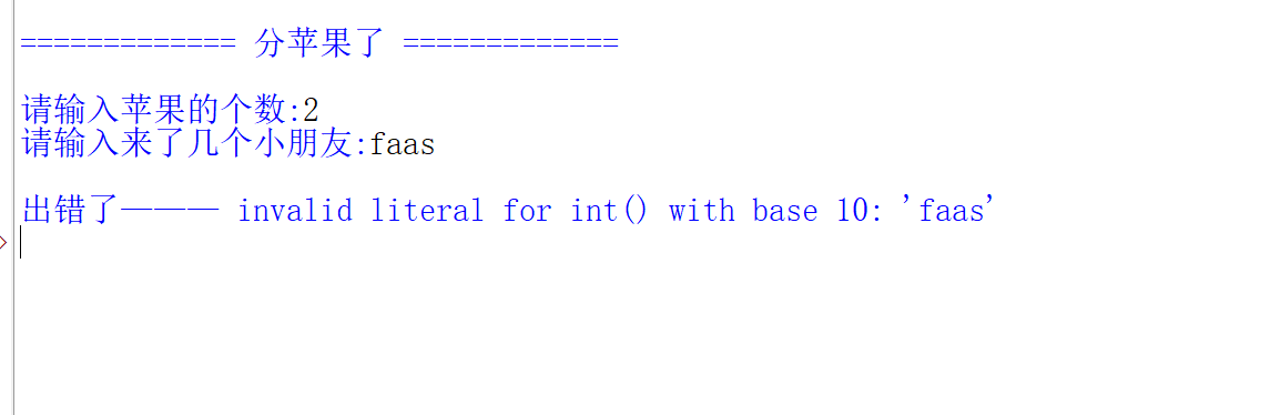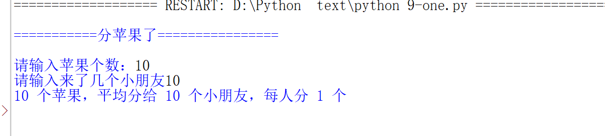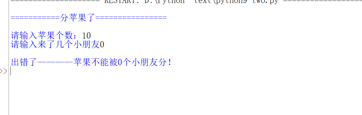 print("\n出错了————苹果不能被0个小朋友分!")