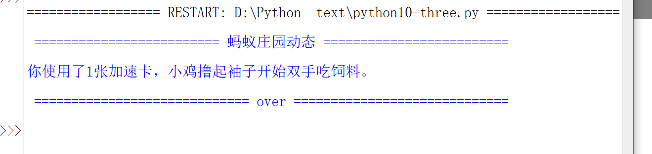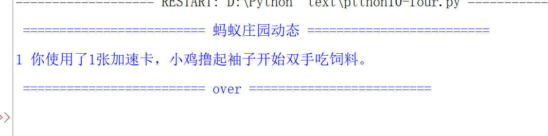 file.write("你使用了1张加速卡,小鸡撸起袖子开始双手吃饲料。")