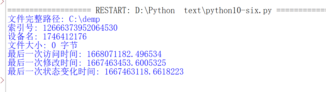 print("最后一次状态变化时间:",fileinfo.st_ctime)