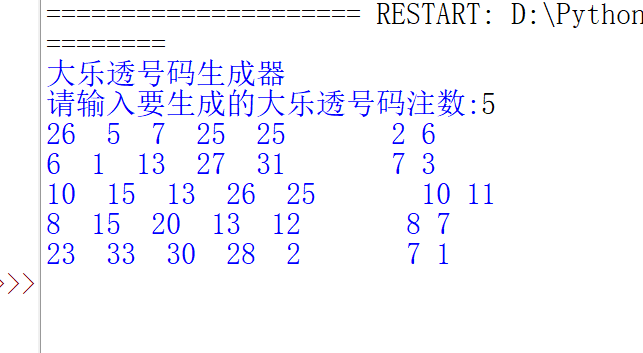 N = int(input("请输入要生成的大乐透号码注数:"))