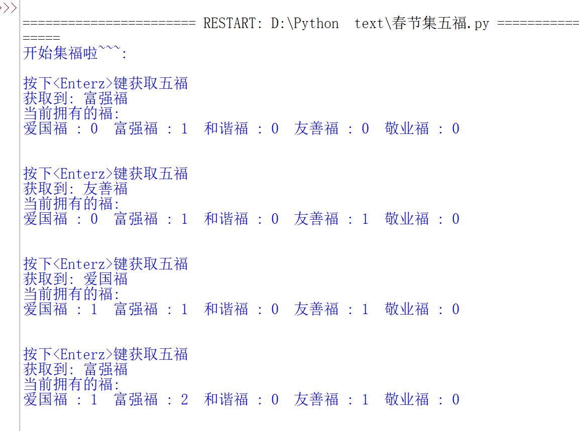 c = ['爱国福','富强福','和谐福','友善福','敬业福']