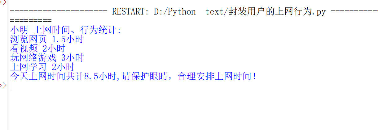 print("今天上网时间共计"+str(time)+"小时,请保护眼睛,合理安排上网时间!")