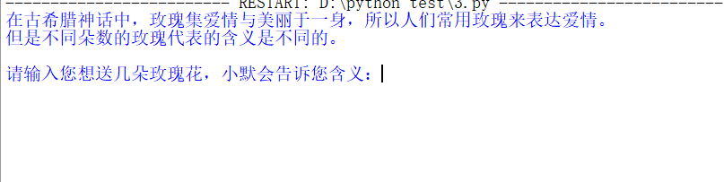 number=int(input("请输入您想送几朵玫瑰花,小默会告诉您含义:"))