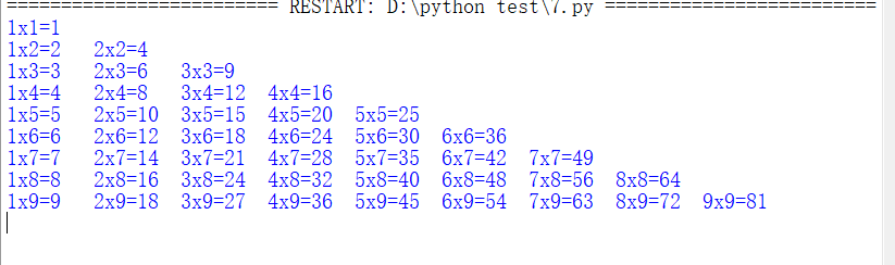 print(str(j)+"x"+str(i)+"="+str(i*j)+"\t",end='')