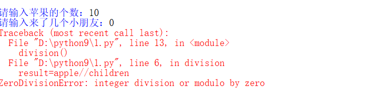 print("\n出错了~_~--苹果不能被0个小朋友分!")