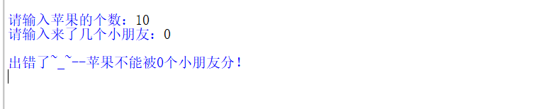 print("\n出错了~_~—苹果不能被0个小朋友分!")
