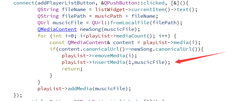 我下面的这段代码的意图是:当前的播放队列中插入一个播放文件到队首,使其为下一个播放文件。但是并没有达到我的预期。