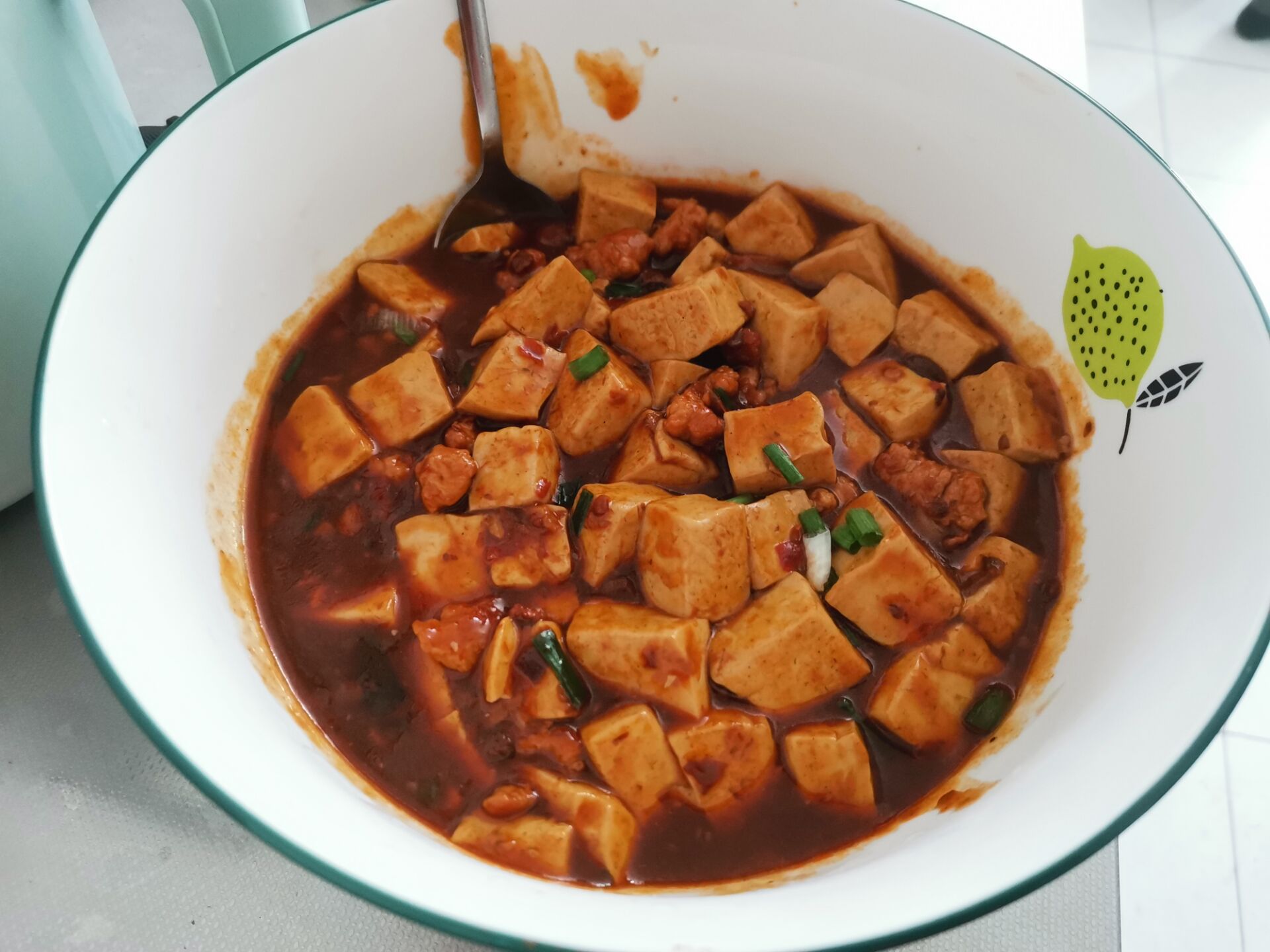 5.炒好肉末之后的清水加多了,应该只需要加到刚刚末过豆腐就行。