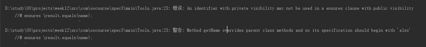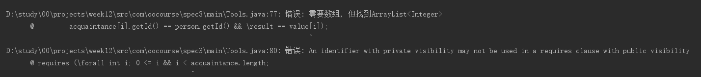 本来应该时用于测试主要函数,但是openjml实在太逊,我自己之前写的一些简单的测试用的类也没有得到理想的结果,更不用说这些复杂的类和函数(而且一测就是一堆不知所以但应该没用的信息),因此我把MyPerson类拉出来重写了一下并用其进行测试,算是起到一个示范作用。