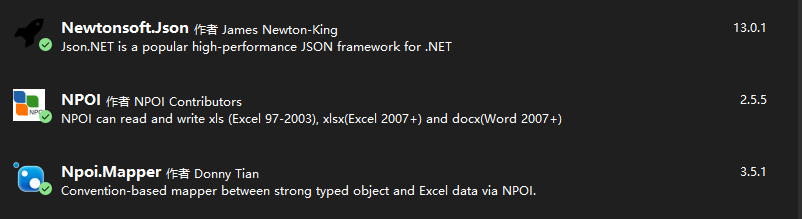 #region NPOI导入 /// <summary> /// NPOI导入 /// </summary> /// <returns></returns> [HttpPost] public IActionResult Upload() { //用户List List<JF_fuli_Sendemail> users = new List<JF_fuli_Sendemail>(); //获取到上传的文件 var file = Request.Form.Files[0]; if (file.FileName == null) { return Json(new { message = "请选择要导入的文件", code = 0 }); } else { //文件转成流 using (var fileStream = file.OpenReadStream()) { //excel转实体 users = ExcelHelper.ParseExcelToList<JF_fuli_Sendemail>(fileStream, "SheetJS"); foreach (var item in users) { _context.JF_fuli_Sendemails.Add(item); } } if (_context.SaveChanges()==users.Count()) { return Json(new { message = "导入成功", code = 1 }); } else { return Json(new { message = "请重新核对导入的文件", code = 2 }); } } } #endregion #region NPOI导出 public IActionResult DownLoad() { //生成List List<JF_fuli_Sendemail> usrs = new List<JF_fuli_Sendemail>(); var res = _context.JF_fuli_Sendemails.ToList(); for (int i = 0; i < res.Count(); i++) { JF_fuli_Sendemail user = new JF_fuli_Sendemail() { seId =res[i].seId, emailtitle = res[i].emailtitle, corpID = res[i].corpID, fanganid = res[i].fanganid, emID = res[i].emID, toemail = res[i].toemail, emailcontent = res[i].emailcontent, fileurl = res[i].fileurl, jssendtime = res[i].jssendtime, relsendtime = res[i].relsendtime, emailtype = res[i].emailtype, sendstate = res[i].sendstate, CreateTime = res[i].CreateTime, IsDel = res[i].IsDel, sendremark = res[i].sendremark, sendphonemsg = res[i].sendphonemsg, relmsgsendtime = res[i].relmsgsendtime, }; usrs.Add(user); } //List转为Excel文件 var fileStream = ExcelHelper.ParseListToExcel(usrs); return File(fileStream.ToArray(), "application/vnd.ms-excel", "用户信息.xlsx"); } #endregion