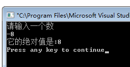 4.输入一个数,输出它的绝对值(负数*-1就是绝对值)。#include<stdio.h>main(){ int c,d; printf("请输入一个数\n"); scanf("%d",&c); if(c<0) d=c*-1; printf("它的绝对值是:%d\n",d);} |