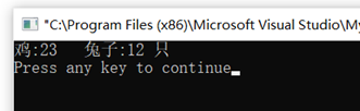 2.编写程序,通过for语句解决“鸡兔同笼”问题。#include<stdio.h>main(){ int x,y; for(x=0;x<35;x++) { y=35-x; if(2*x+4*y==94) printf("鸡:%d 兔子:%d 只\n",x,y); }} |